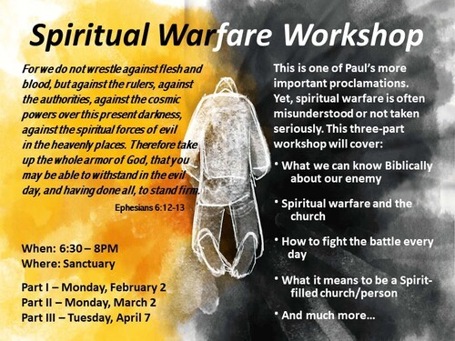 We hope reading and studying the Scriptures will become a daily activity. To help us in this effort, St. Timothy will continue the mid-week bible study. This is a causal time to dive into the Word and then receive communion. In addition, St. Timothy will offer a new 3-part study series on Spiritual Warfare.
